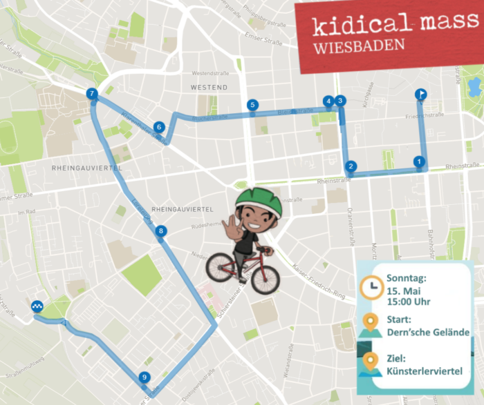 Am Sonntag, 07. Mai 2023 veranstaltet der Fahrradclub die 9. Kidical Mass Wiesbaden. Treffpunkt ist um 15:00 Uhr auf dem Dernsches Gelände.